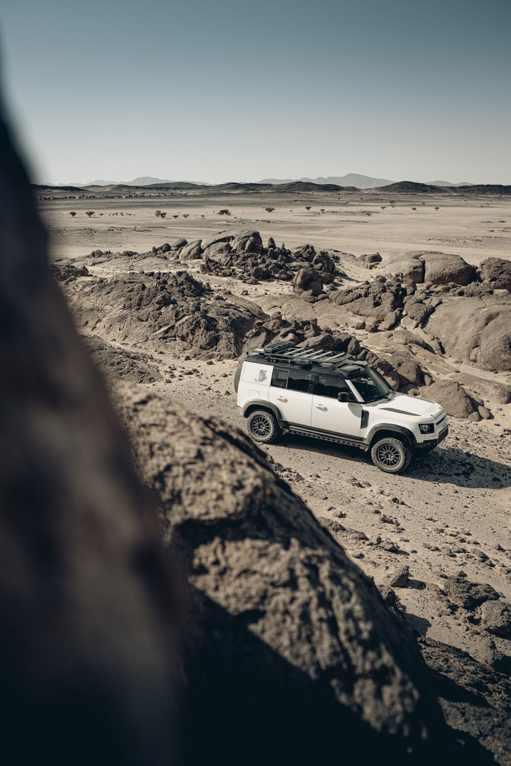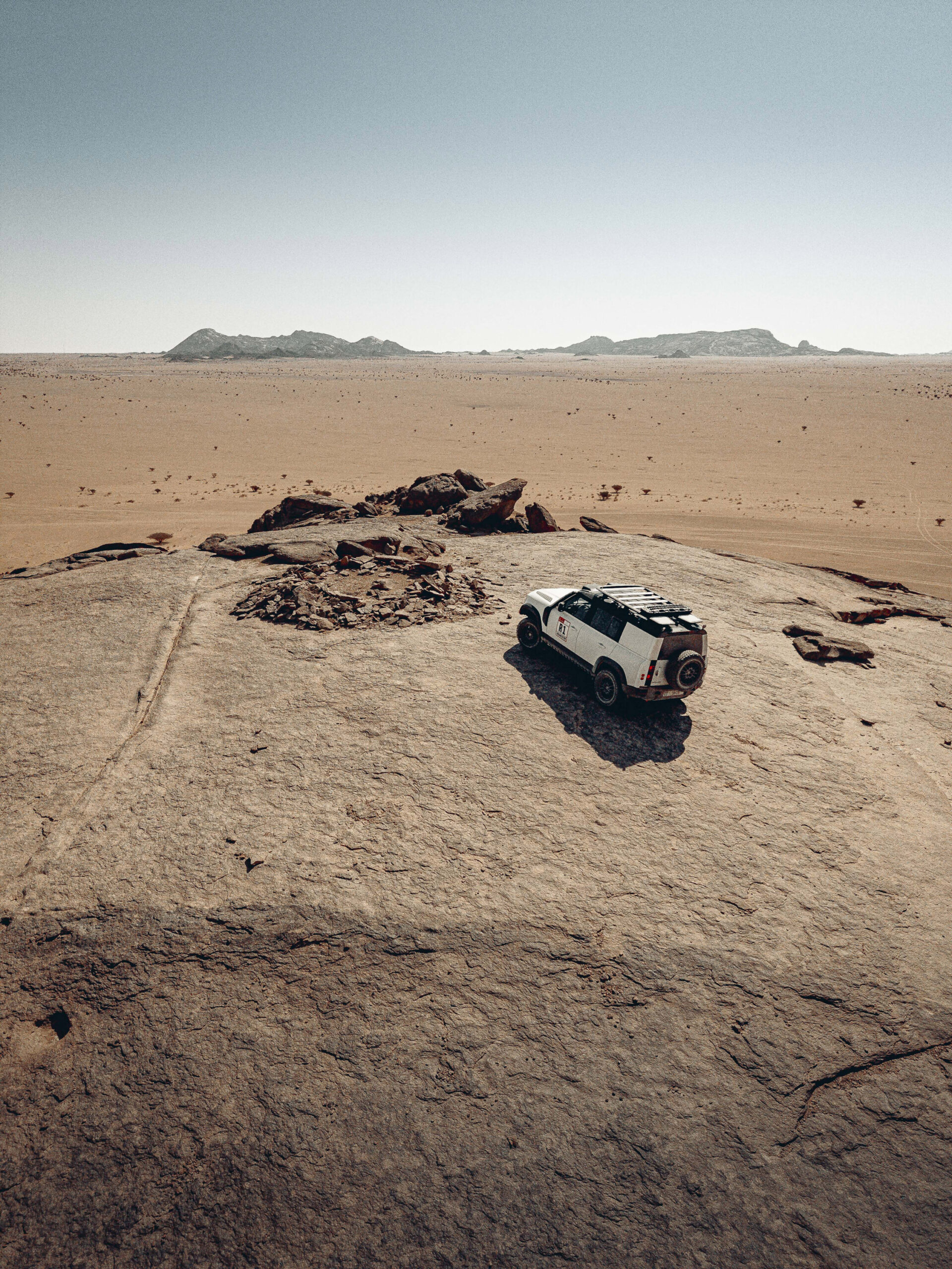 De Defender-verkenningsauto’s zijn gebaseerd op de Defender 110 met P300-motor* en zijn voorzien van specifieke rally-aanpassingen. Daarmee zijn ze optimaal uitgerust voor de intensieve weken van routeplanning in de woestijn. Een fase waarin officials lange dagen achter het stuur doorbrengen en zich een weg banen over zandpaden, losse ondergronden, venijnige duinen en rotsachtig terrein.